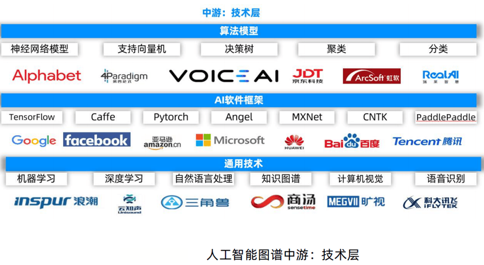 目前中国各类AI手艺全面成长,除了由市场需求驱动的使用手艺成长之外,正在政策牵引及营业需求驱动下,中国市场也正在积极补齐根本理论研究方面的短板,鼎力鞭策如AI芯片、深度进修等范畴的手艺冲破,从底层手艺出发赋能AI产物及处理方案的迭代。 正在政策方面,国度出台一系列财产政策,鞭策人工智能行业高质量成长,明白产量取投资增加方针,通过成立健全科学合理的智能社会成长取管理尺度研究制定、实施反馈、优化完美的工做机制等办法,夯实行业成长根本。同时,政策带动相关行业成长,如电子消息制制业等,从而鞭策人工智能市场需求不变增加,为行业成长供给了政策支撑和成长标的目的。 中国方面,以2015年《中国制制2025》出台为初步,人工智能被写入“十三五”规划纲要及工做演讲。2017年国务院发布《新一代人工智能成长规划》,将人工智能上升到了国度计谋层面。随后多部分接踵出台若干焦点政策和规划,为我国人工智能行业快速成长供给帮力。 目前业内已有近40个各类AI进修框架,生态合作非常激烈,全球公司先后推出用于深度进修模子锻炼的开源框架,包罗Caffe、Theano、Torch、MXNet、TensorFlow等,极大降低了人工智能手艺正在实践中的入门门槛,中国的百度飞桨(PaddlePaddle),大学的计图(Jittor)和华为推出的MindSpore也先后问世。除了谷歌、阿里、百度、腾讯等科技巨头正在纷纷结构外,如商汤、旷视、科大讯飞等公司也插手了手艺层深耕行列。