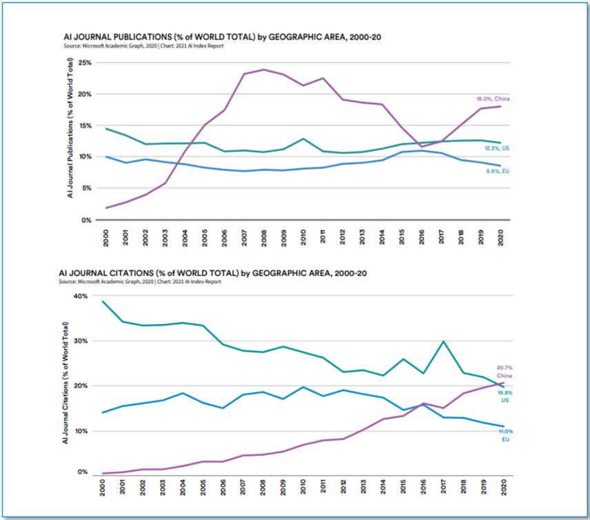 从2024年12月至2025年5月,分歧类别生成式AI东西的流量变化显示了其成长态势。通用AI东西,如ChatGPT,流量增加显著,从25%增至55%,表白其正在从动化使命和言语理解方面的普遍使用。正在设想取图像生成范畴,东西如Midjourney和Stable Diffusion 的流量波动,反映出创意行业对这类东西的逐渐采取。 人工智能是计较机科学的一个分支,被定义为可以或许模仿取人类大脑相联系关系的认知智能行为的“机械”,它是研究、开辟用于模仿、延长和扩展人的智能的理论、方式、手艺及使用系统的一门新的手艺科学。1956年由约翰。麦卡锡初次提出,其时的定义为“制制智能机械的科学取工程”。人工智能目标就是让机械可以或许像人一样思虑,让机械具有智能。时至今日,人工智能的内涵曾经大大扩展,是一门交叉学科。 人工智能财产包罗了根本层、手艺层以及使用层,目前我国已构成了较成熟的人工智能生态。正在根本层,大数据、云计较、边缘计较、智能芯片范畴,国内领先的企业有阿里巴巴、华为、寒武纪等代表企业;正在手艺层,我国正在计较机视觉、智能语音、机械进修、天然言语处置等细分范畴也降生了诸如科大讯飞、云从科技、商汤科技、旷视科技等企业。 近年来,中国人工智强人才数量快速增加,已成长成为人工智能大国。从颁发论文和论文被援用的数量能够反映中国人才和手艺研究能力取美国和欧洲比拟的快速前进。 按照斯坦福研究院Human-Centered AI发布的《2021年人工智能指数演讲》,正在三大人工智能强国(中国、美国和欧盟)中,中国的人工智能论文颁发量和被援用量均居全球首位。2020年中国期刊颁发数量以18。0%的比例跨越美国(12。3%)和欧盟(8。6%)。 代码生成取 DevOps 东西流量持续攀升,显示软件开辟范畴的效率提拔需求。音乐生成东西流量虽有崎岖,但全体呈上升趋向,预示着音乐创做模式的变化。视频生成东西流量先降后升,申明视频内容创做范畴正派历调整取摸索。 从企业参取环境来看,截至2025年5月6日我国计较机视觉行业相关企业注册量为17142家;此中企业注册量前五的省市别离为广东省、市、江苏省、上海市、浙江省;企业注册量别离为4970家、1817家、1672家、1325家、1122家;占比别离为28。99%、10。60%、9。75%、7。73%、6。55%。全体来看,广东省相关企业注册量远高于其他省市。