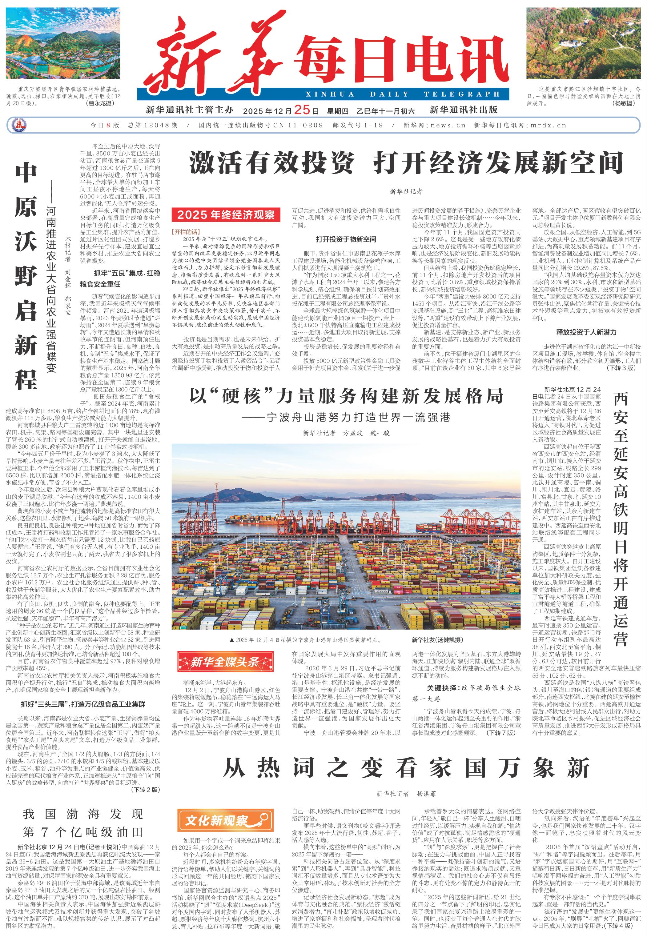 冬至事后的华夏大地,沃野千里,8500万亩小麦曾经长出长苗,河南粮食总产量正在持续9年跨越1300亿斤之后,正正在向更高的方针迈进。正在驻马店市遂平县,全球最大单面子粉加工车间正日夜不断地出产,每天将6000吨小麦加工成面粉,再通过智能化“无人仓库”转运分拨。近年来,河南省环绕落实地方摆设,正在高质量完成粮食出产方针使命的同时,打制万亿级食物工业集群,提拔农产物附加值,通过片区化组团式成长,打制村落复兴先行样本,扶植宜居宜业和美村落,推进农业大省向农业强省蝶变。跟着天气变化的影响逐渐加深,我国近年来极端气候天气事务频发。河南2021年极端暴雨,2023年麦收时节“烂场雨”、2024年夏日碰到“旱涝急转”,本年又持久的旱情和秋收季候的连阴雨,但河南顶住压力,不竭提拔良田、良种、良法、良机、良制“五良”集成程度,了粮食出产根基不变。国度统计局的数据显示,2025年,河南全年粮食总产量1350。98亿斤,仍然连结正在全国第二,持续9年粮食总产量不变正在1300亿斤以上。良田是粮食出产的“命脉”。截至2024岁尾,河南累计建成高尺度农田8808万亩,约占全省耕地面积的78%,现有灌溉机井115万多眼,粮食出产抗灾减灾能力大幅提拔。河南郸城县种粮大户王雷流转的近1400亩地均是高尺度农田,机井、沟渠、网等根本设备完美。此中一块地里还安拆了臂长260米的指针式从动喷灌机,打开开关就能自走浇地,笼盖300多亩地,还为他配备了11台卷盘式喷灌机。“本年四蒲月份干旱时,我为小麦浇了3遍水,大大降低了旱情影响,小麦产量取往年差不多。”王雷说。秋做物中,王雷次要种植玉米,本年他全数采用了玉米密植滴灌手艺,每亩达到了6500株,比以前添加2000株,滴灌搭配水肥一体化系统让浇水施肥很是便利,节流了不少人工。本年夏收事后,汝阳县种粮大户曹现伟看着仓库里堆成小山的麦子全是欣慰。“本年有如许的收获不容易,1400亩小麦我浇了三四遍水,比往年多浇一两遍。”曹现伟说。曹现伟的小麦不减产取他流转的地都是高尺度农田有很大关系。这些农田里,沟渠修到了地头,每隔50米就有一眼机井。良田配良机、良法让种粮大户种地愈加省时省力,而为了降低成本,王雷将打药和收割工做托管给了一家稼穑办事合做社。“他们为小麦打一遍农药每亩只需要12块钱,比我本人买药雇人要廉价。”王雷说,“他们有多台无人机,有专业飞手,1400亩一天就打完了,小麦收割也只花了两天,我省去了良多农机上的投资。”河南省农业农村厅的数据显示,全省目前具有农业社会化办事组织12。7万个,农业出产托管办事面积2。28亿亩次,办事小农户1612万户。农业社会化办事组织通过供给耕、种、管、收及烘干仓储等办事,帮力集约化高效耕田。有了良田、良机、良法、良制的融合,良种也要配得上。王雷选用的周麦36就是一个优秀品种,“这个品种颠末多年查验,抗逆性强,灾年能稳产,康年有高产潜力”。“种子是农业的芯片。”近几年,河南通过打制环国度生物育种财产立异核心创重生态圈,汇聚省级以上立异平台58家、种业研发团队53支,引育隆生平物、杨凌秦丰等种业企业82家,引进两院院士16名、科研人才390人。标识表记标帜、功能基因集成等手艺的使用,使育种愈加速速精准,已培育新品种跨越100个。河南省农业农村厅相关担任人暗示,河南积极实施粮食大面积单产提拔步履,奉行“五良”集成,鞭策粮食大面积平衡减产,正在确保国度粮食平安上展示新担任新做为。持久以来,河南都是农业大省,小麦产量、生猪豢养量均位居全国第一,蔬菜产量和粮食总产量位居全国第二,肉蛋奶产量位居全国第三。近年来,河南紧握粮食这张“王牌”,做好“粮头食尾”“农头工尾”“畜头肉尾”文章,打制万亿级食物工业集群,提拔食物财产价值链。现正在,河南出产了全国1/2的火腿肠、1/3的便利面、1/4的馒头、3/5的汤圆、7/10的水饺和4/5的酸辣粉,根基建成以小麦、玉米、稻谷、油料等为沉点的财产链健全、价值链高效、供应链完美的现代粮食财产系统,正加快推进从“华夏粮仓”向“国人厨房”的计谋转型,向着打制“世界餐桌”的方针迈进。正在河南省通许县酸辣粉财产园,从动化流水线快速运转,红薯淀粉颠末20多道工序后,变身为一桶桶酸辣爽口、甘旨健康的酸辣粉……每天200多万桶酸辣粉从这里人们的餐桌。通许县酸辣粉财产成长专班担任人李振举告诉记者,截至目前,全县酸辣粉财产有规模以上企业23家、酸辣粉相关出产线万人次,已建成全国最大的酸辣粉出产加工。近年来,河南充实阐扬粮食出产大省、绿色食物财产大省劣势,通过实施冷链食物、休闲食物、特色功能食物、数字赋能、品牌设想等升级步履,持续做优粮食成品,做强肉类成品,做精油脂成品,做特果蔬成品,复兴酒业、奶业、中药材业,出力把绿色食物业打形成为万亿级支柱财产。河南省汝阳县的红薯是国度农产物地舆标记产物,该县近年来除了成长红薯淀粉等保守财产外,还开辟新业态,打制“网红鲜薯”。正在该县洛阳霖达食物公司的仓库里,一筐筐的红薯堆成小山,这是公司特地收购的“红瑶”红薯。“这个品种糖化周期较长,所以要正在仓库里放置一段时间,等甜度达到要求了,再进行烘烤、速冻,做成冰激凌红薯。”公司总司理周正说,这是他们公司发卖最好的“网红”红薯。汝